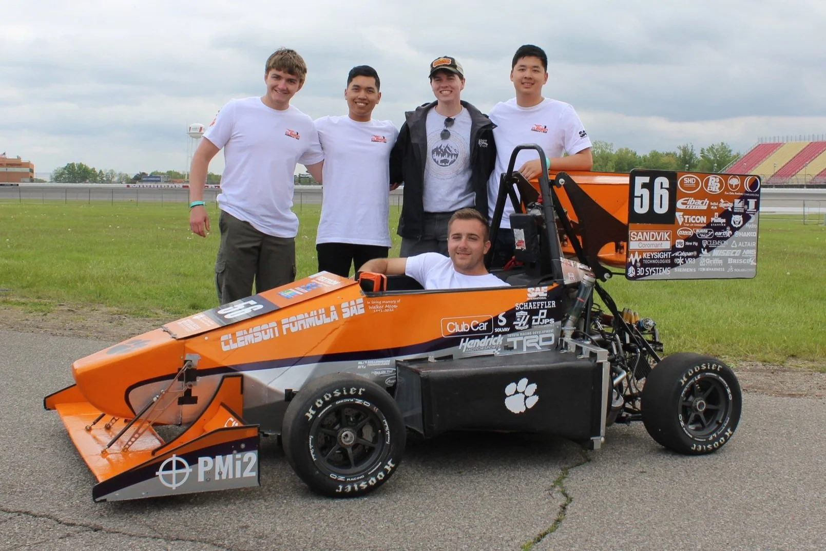 Members of the business division pose with the Tiger 23 at FSAE Michigan 2023.