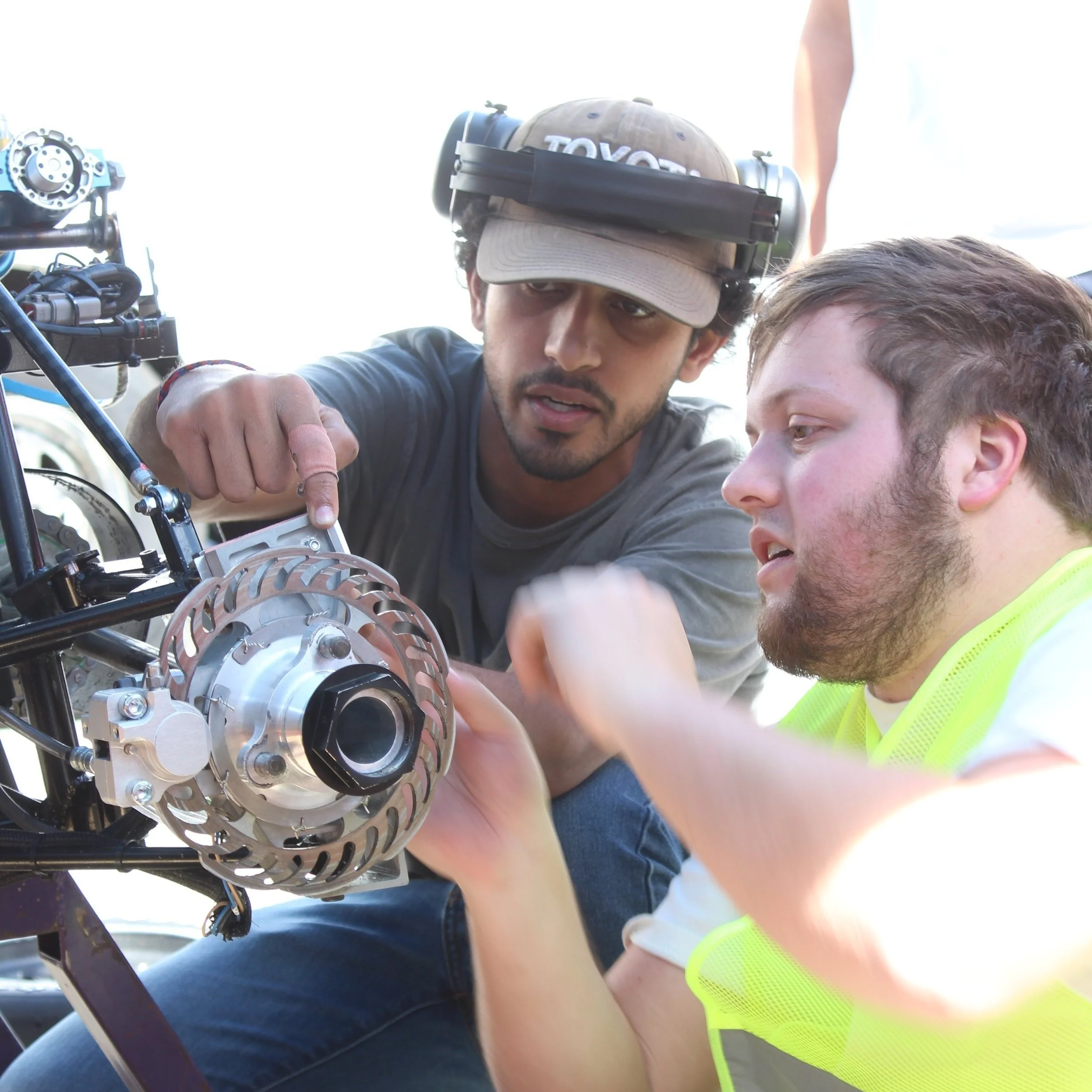 The Suspension division is a combination of geometric suspension design and Vehicle Dynamics testing and tuning. This sub-team is responsible for how the car handles and controlling the interactions between the tires and the ground. From setting spring/damping rates and adjusting alignments to mathematically solving for wheel kinematics, the Suspension Division is a perfect fit for those who enjoy getting their hands dirty and making on the fly adjustments based on driver feedback to those who would rather perform simulations and create models on computers.